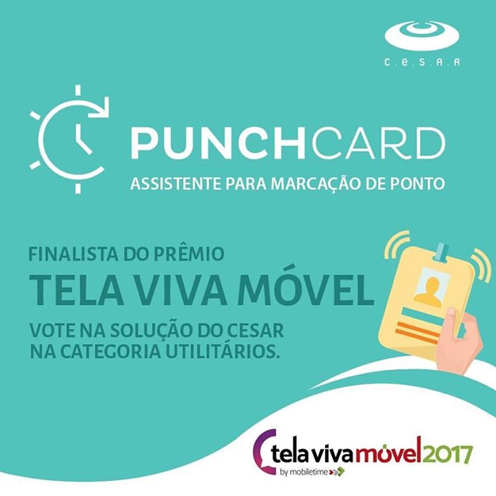 Solução concebida e desenvolvida pelo CESAR, o PunchCard é um assistente inteligente de apoio à marcação de ponto, que esclarece aos usuários as regras da CLT, fornecendo dicas práticas e alertas, reduzindo as marcações incorretas e consequentemente as ocorrências/multas.